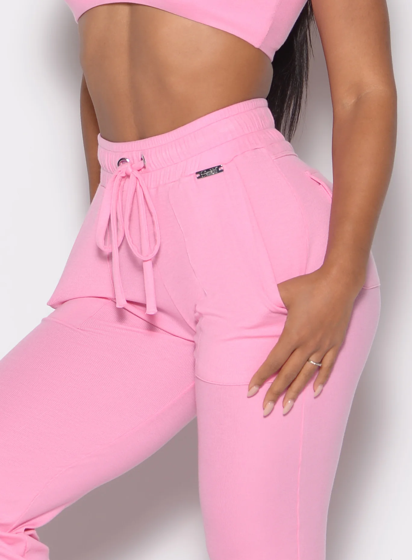 The Snap Rib Joggers in Pink Cupcake are the ultimate mix of comfort and playful style. Designed as ladies pink joggers, they feature a scrunched elastic waistband and ankle cuffs for a flattering fit that stays relaxed yet polished. Front pockets and back snap pockets bring practical storage, while the lightweight, airy fabric ensures all-day comfort. With their ribbed texture and 30” inseam, these joggers are perfect for pairing with sports bras, tanks, or cozy pullovers. Whether for casual outings, lounging at home, or post-workout layering, these pink joggers are a versatile everyday staple.